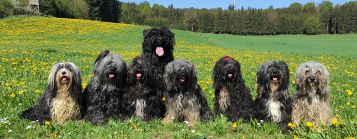 Wir zehn Damen, 7 Tibet Terrier und ein Bouvier des Flandres, leben zusammen mit unseren “Mädels” in einem schönen Haus am Hang mitten in einem hundegerechten grossen Garten - sprich viel Wiese, Kirschen, die wir direkt vom Baum pflücken können und Äpfel mit denen man spielen kann, viele Möglichkeiten Igel aufzustöbern und Löcher zu graben. Selbst im Notfall dürfen wir mal...